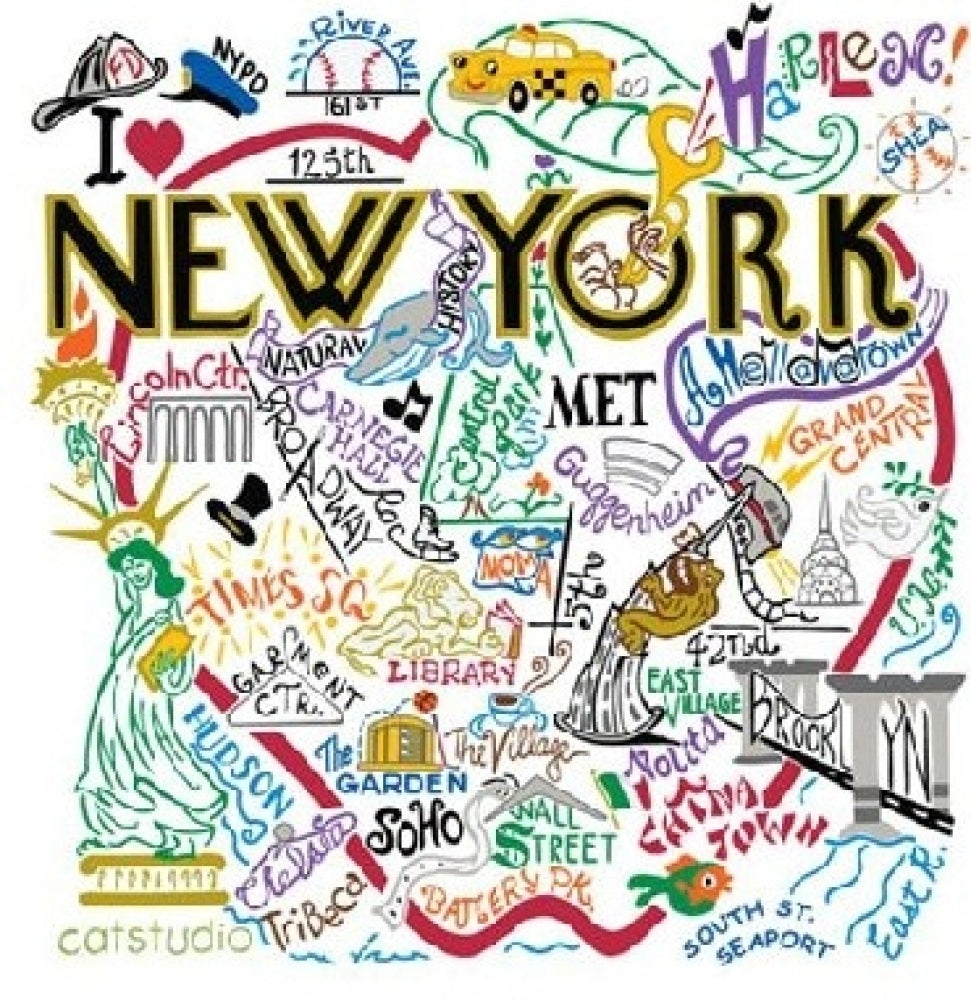 An original design from Catstudio, this is a 100% cotton dish towel. The design is silk screened before being framed with a hand embroidered border. This dish towel is a homage to everything that makes New York City great, taking time to celebrate all the unique neighborhoods. This is perfect as a housewarming gift for a new New Yorker, to remember a visit to NY, or simply for anyone who has a fondness of our fantastic city.